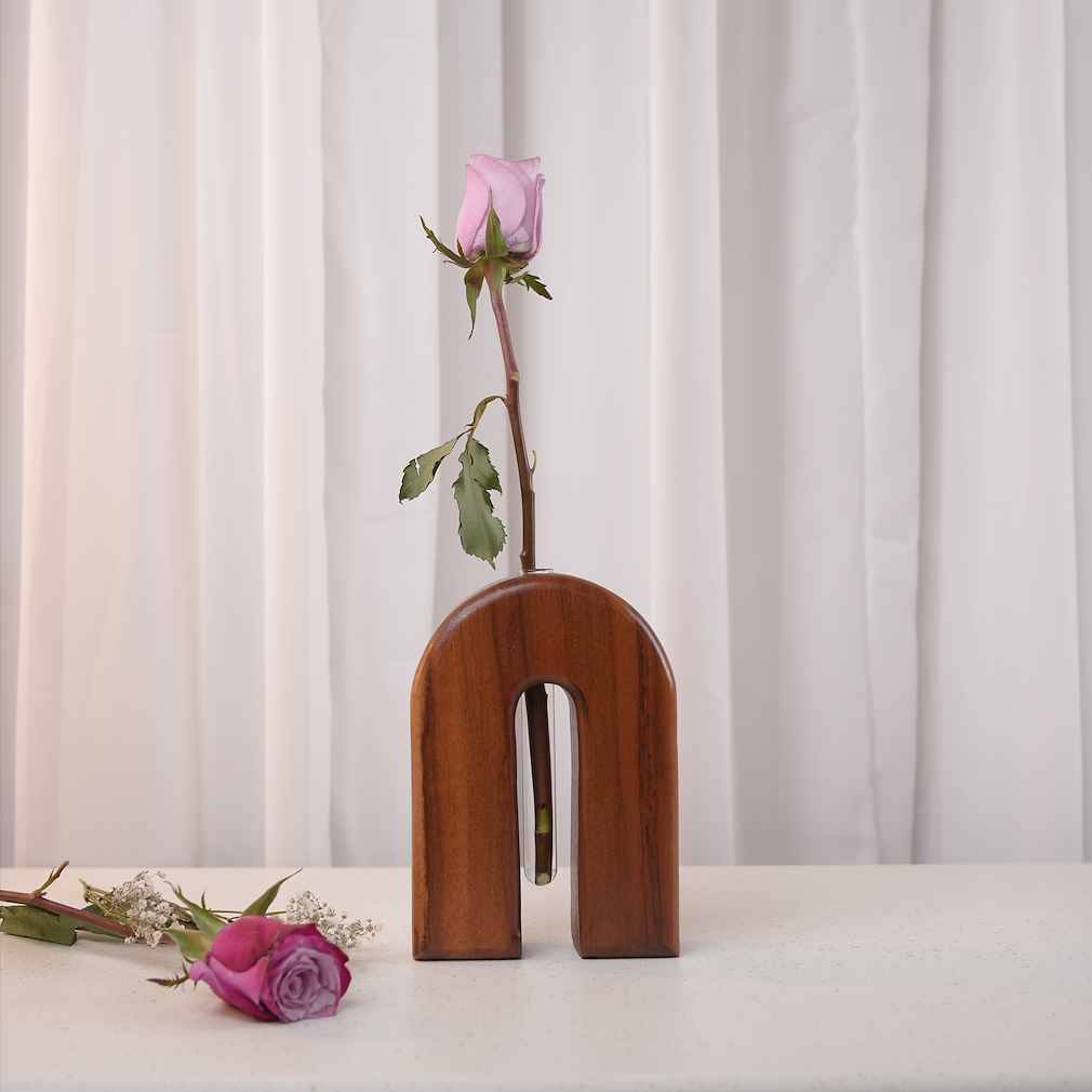 N-Shaped Glass Tube Vase Made of Berry wood Hand made